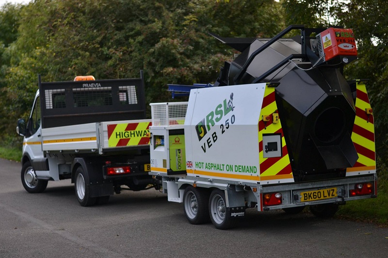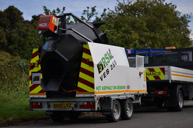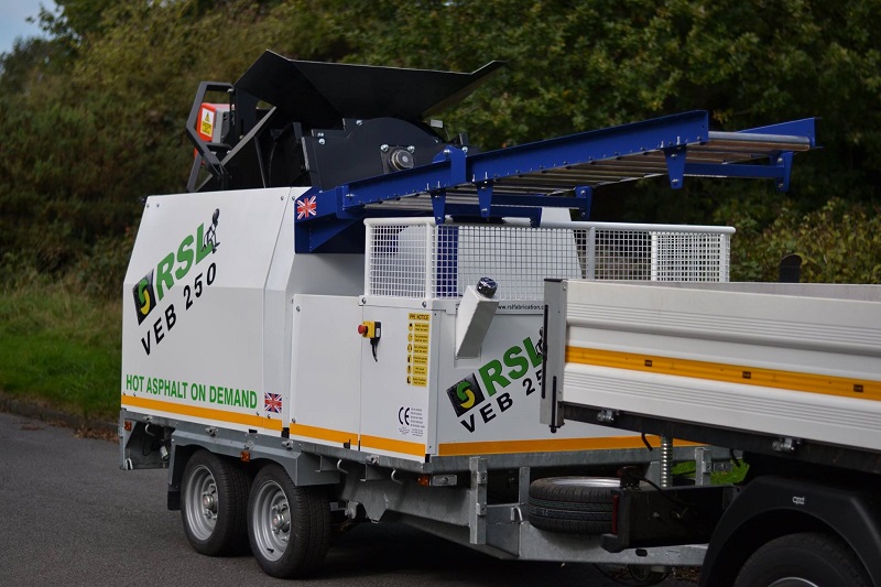 Комплекс является оптимальным для ямочного ремонта и исправления выбоин на асфальтовом покрытии дорог и тротуаров. За несколько минут установка может изготовить до 250 кг асфальтобетонной смеси из старого кускового асфальта или крошки. Оборудование эффективно на больших расстояниях от асфальтовых заводов, когда доставка небольшого количества асфальта становится убыточным. Рециклер асфальтобетона на прицепе VEB 250 - предназначен для регенерации асфальтовой крошки и кускового асфальта. Двухконусный барабан с внутренними лопастями является основной частью рециклера, благодаря такой конструкции асфальтобетонная смесь внутри пересыпается под действием силы тяжести и перемешивается под нагревом.